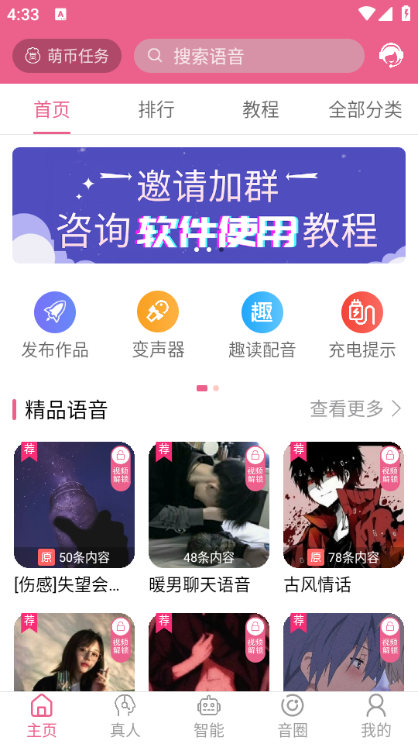 萌配音变声器最新版分享给大家,这是一款拥有上千种语音包的变声器软件,适用于游戏开黑、广告语录制、视频配音、语音聊天等多种场景,操作十分简单,萌配音app让你的声音更加多变!