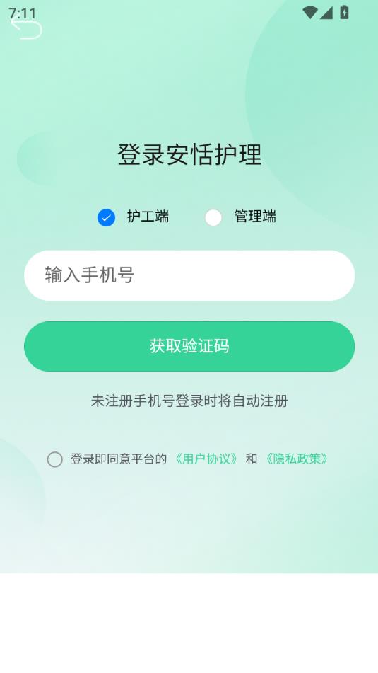 选择身份输入信息点击登录即可,未注册手机号登录时将自动注册。