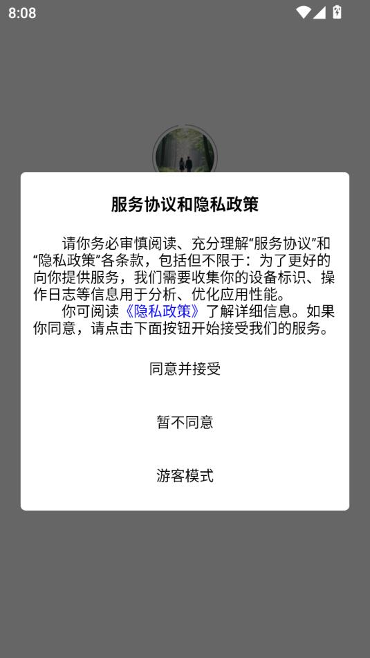 阅读服务协议和隐私政策,点击同意并接受。