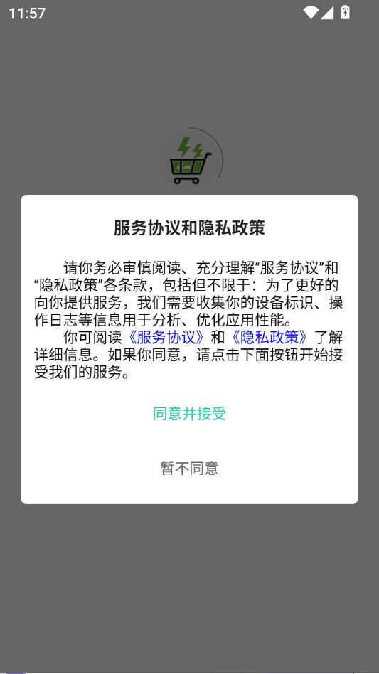 阅读服务协议和隐私政策,点击同意并接受。