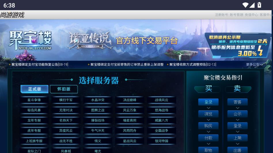 聚宝楼app是款专门为诺亚传说玩家打造的游戏交易平台,其中包括游戏账号、道具以及各种稀有材料资源等,所有信息都确保真实有效,并且拥有完善的交易流程,确保交易能够顺利完成。