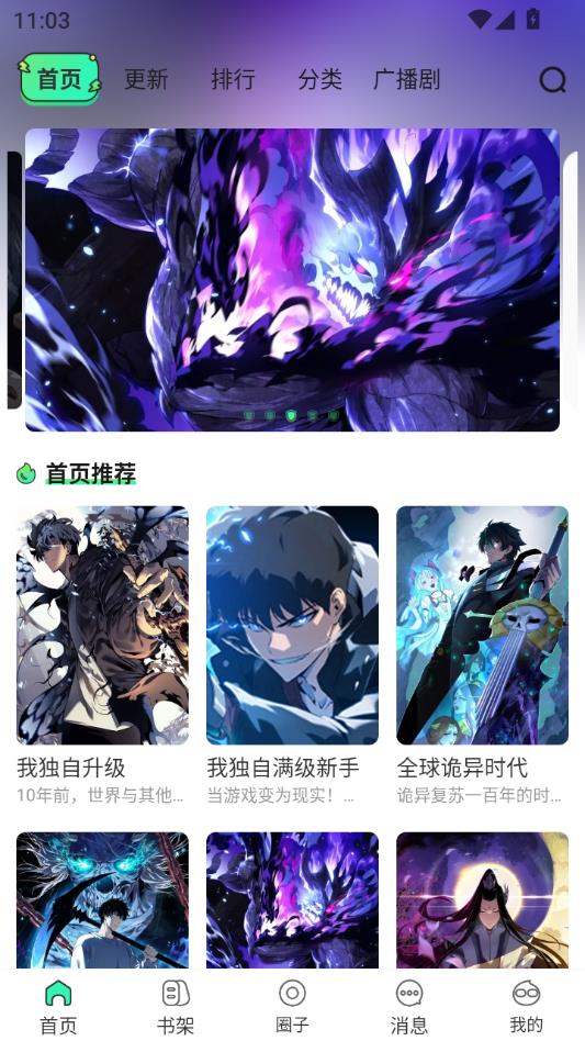 智能推荐系统:首页“为你推荐”板块动态推送个性化漫画与广播剧。