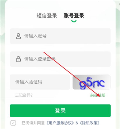 2、在登录界面点击前往注册;