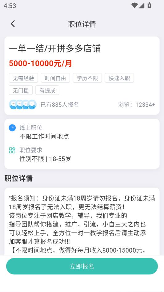 2、多数岗位无需经验、学历不限,且支持宅家操作,都是可以方便去上手操作的。