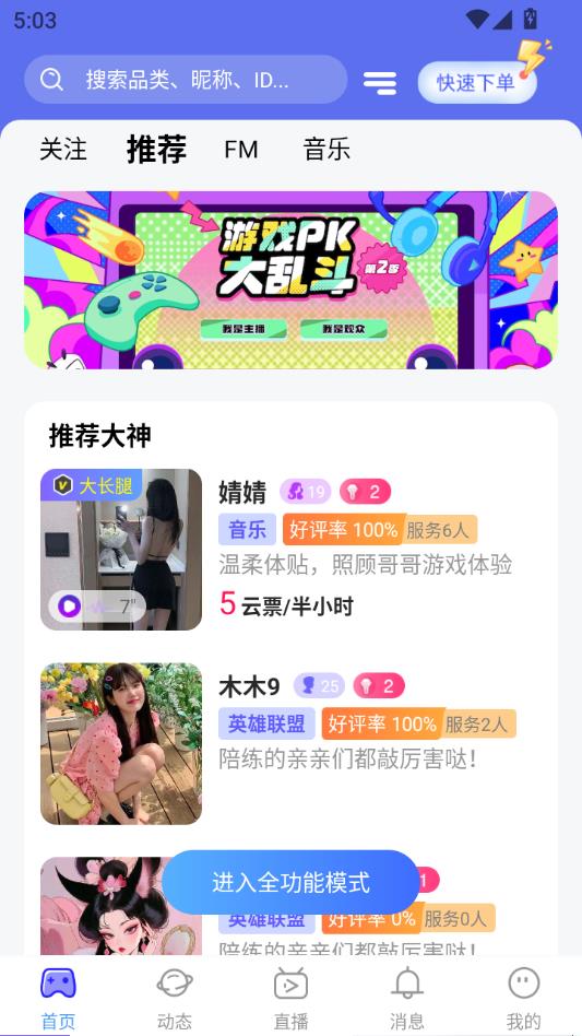 进入首页,如果想要使用全功能模式,需要先进行登录注册。