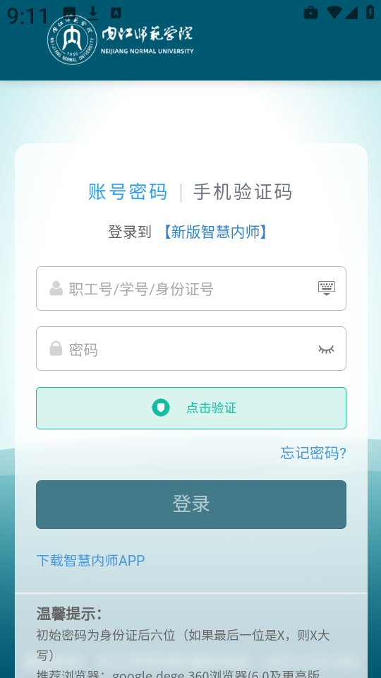 多种登录方式:智慧内师提供多种登录方式,包括账号登录、短信登录和二维码登录,确保用户能够方便快捷地进入系统,无论是在课堂上还是在校园内,轻松访问所需信息。