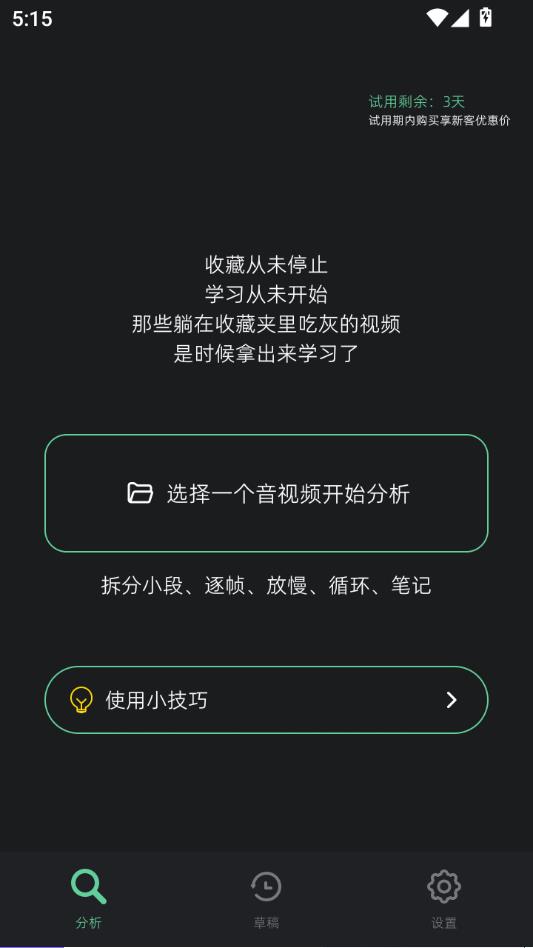 瓜驴跟练器app是款非常好用的乐器教学软件,它能够将节奏和动作进行分段循环联系,加深学习者的记忆,通过智能视频拆解工具可以自定义截取任意片段进行循环播放练习,精准攻克难点,提升练习效率。