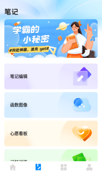 在笔记页面提供了笔记编辑、函数图像等功能。