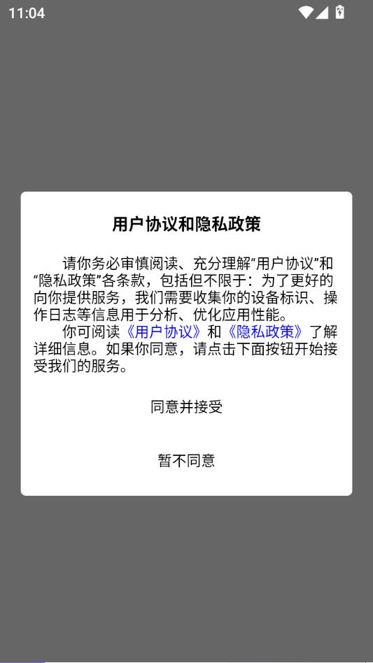 阅读用户协议和隐私政策,点击同意并接受。