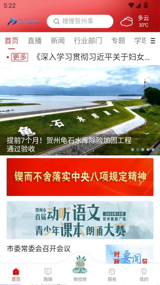 贺州融媒app是款专门为贺州本地居民打造的新闻资讯软件,其中汇聚了本地丰富的新闻热点,还包括全面的生活服务、政务服务功能,旨在连接市民和政府,共同创建美好文明城市。