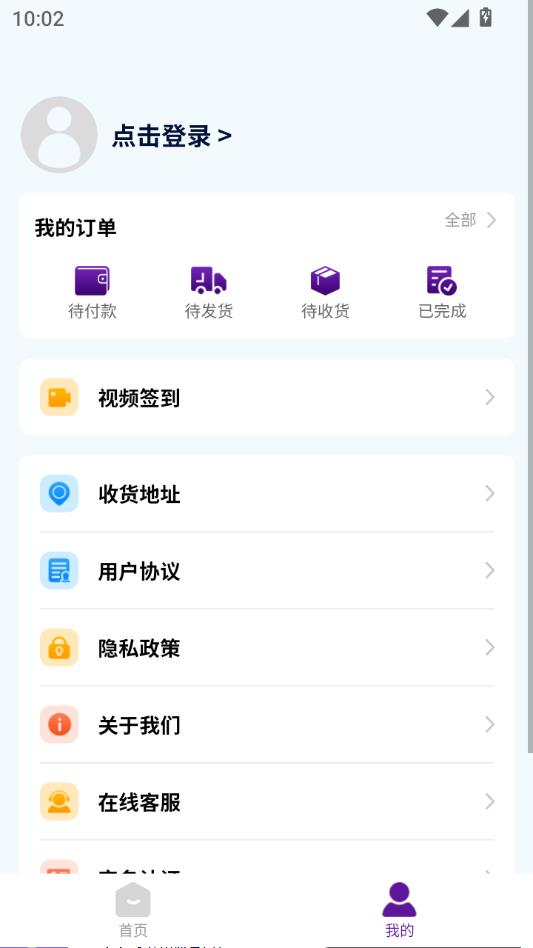 在首页中点击我的。