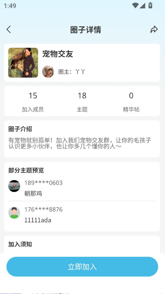 可以看到显示没有加入圈子,返回首页点击下方内容。