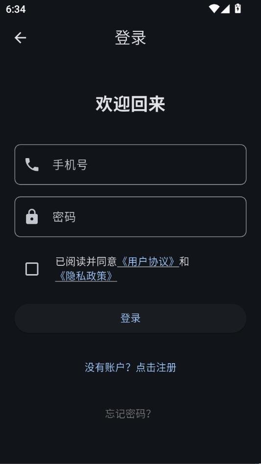 输入信息点击登录即可,如果没有账号点击下方注册即可。