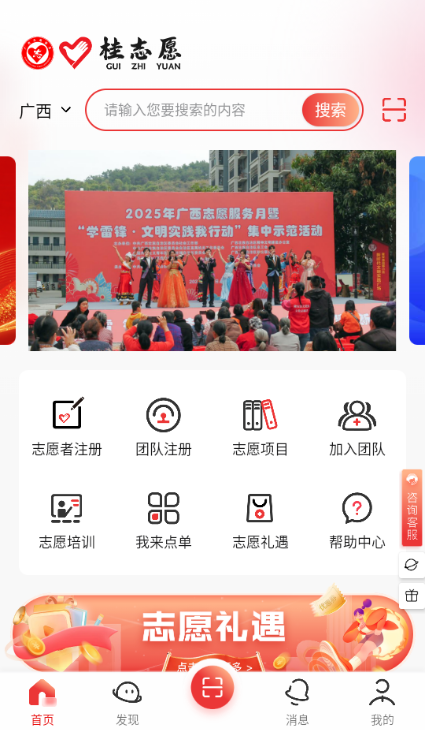 桂志愿APP让用户能够轻松在线申请志愿者身份,简化了传统志愿服务的报名流程,让更多人能够参与到志愿服务中来。