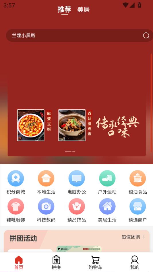 按“电脑办公、户外运动、粮油食品、鞋靴服饰、家居日用”等大类及子类进行浏览。