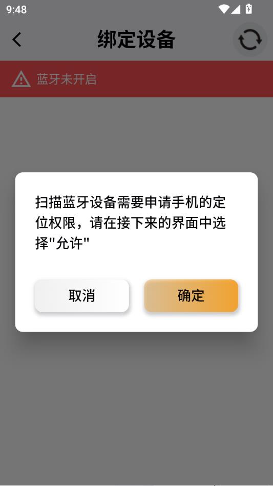 进入后会弹出一个开启蓝牙的提示,点击允许。