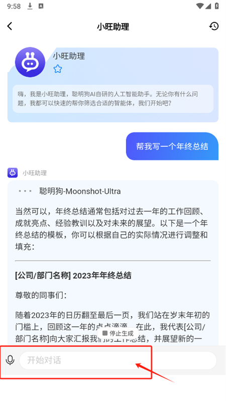 4.点击小旺助理,输入问题内容,软件会快速为您生成解答