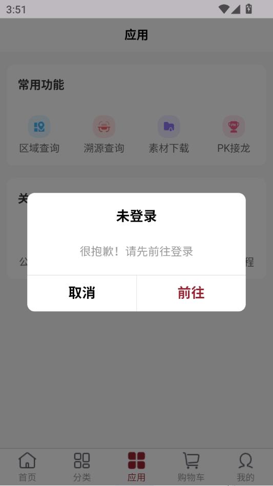 如果未登录会弹出上图弹框,点击前往。
