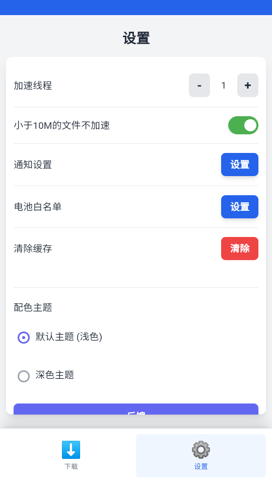5、在设置界面,可以自定义设置加载线程以及开启小于10M的文件不加速的功能。