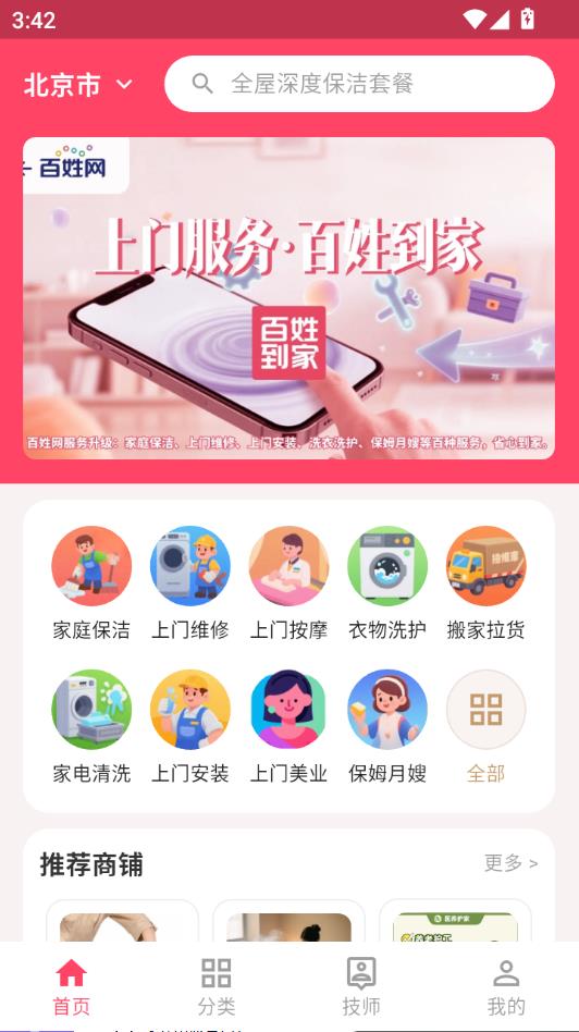 百姓到家app是款专注于家庭生活服务的软件,旨在为城市家庭提供便捷、高质量的上门服务,通过整合本地优质服务在医院,让用户足不出户就能轻松预约所需服务,包括保洁、保姆、维修等多种服务类型。