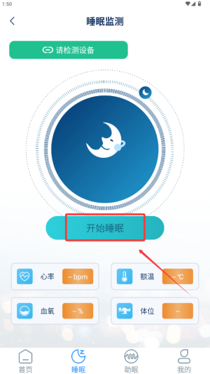 点击“开始睡眠”,设备即进入监测状态,自动采集您的睡眠数据。