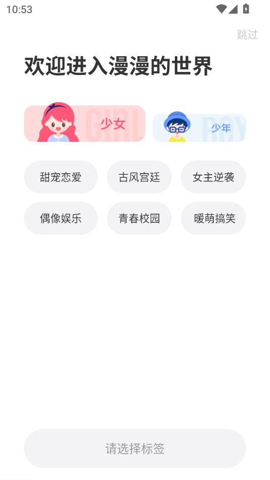 如果是首次进入可以在这里选择喜欢的标签,方便系统推荐相关精彩作品。