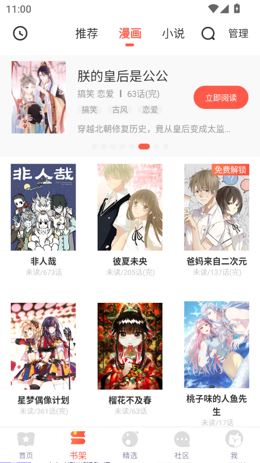 进入书架页面,这里提供了超多精彩的漫画资源。