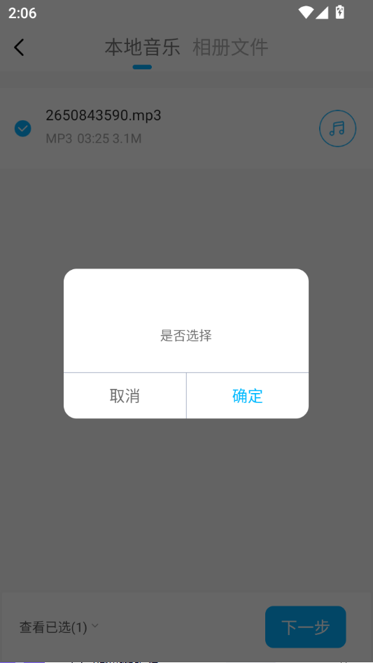 等待片刻搜索本地音乐,勾选想要调整的音乐点击下一步。