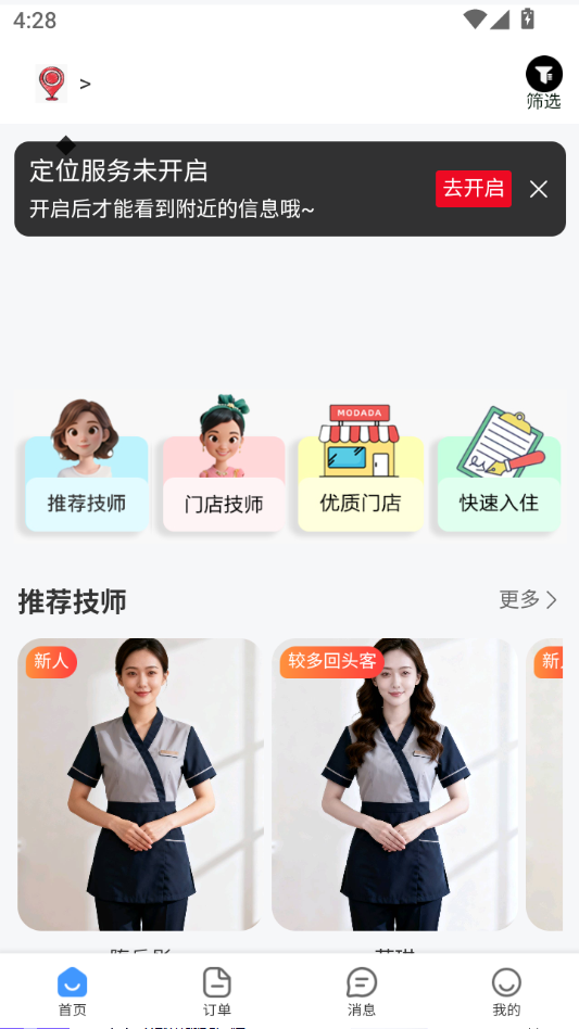 智能搜索与定位:基于GPS定位,快速查找同城、附近的技师或门店资源。