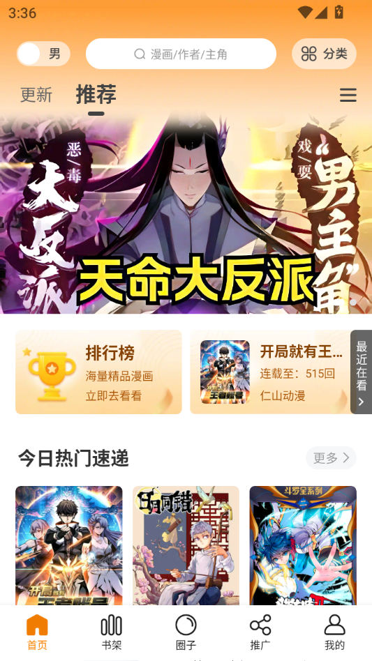 进入首页,这里推荐了许多热门漫画作品。