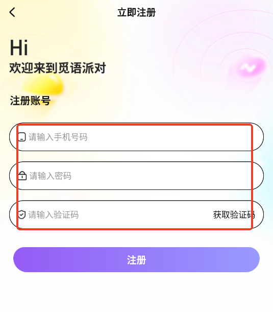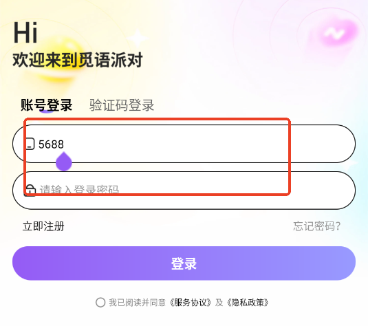 2、Hi,欢迎来到觅语派对,从账号登录和验证码登录之中选择一个适合你的吧。