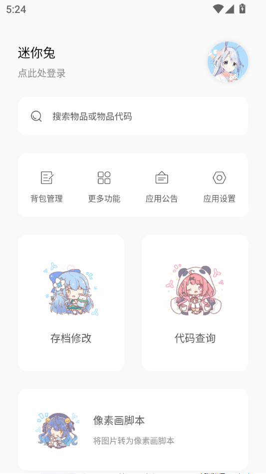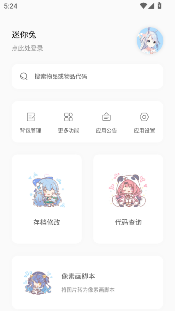 迷你兔app是款专门为《迷你世界》玩家设计的第三方游戏工具,集成资源获取、功能修改、内容创作等多种模块于一体,旨在为用户提供更加舒适的游戏体验,玩家可以自由控制开关,有需要的可以下载试试!