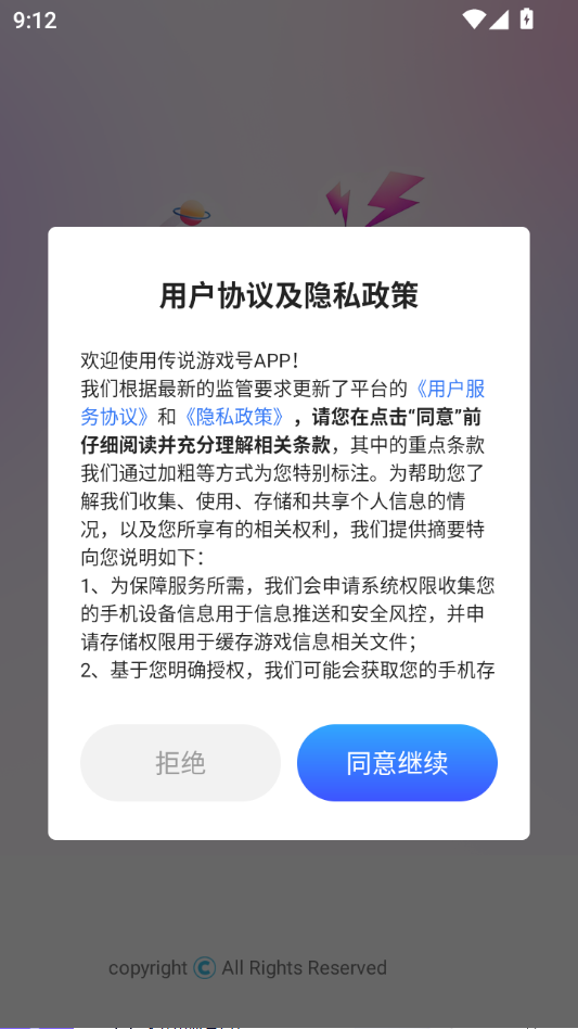 阅读用户协议和隐私政策,点击同意并继续。