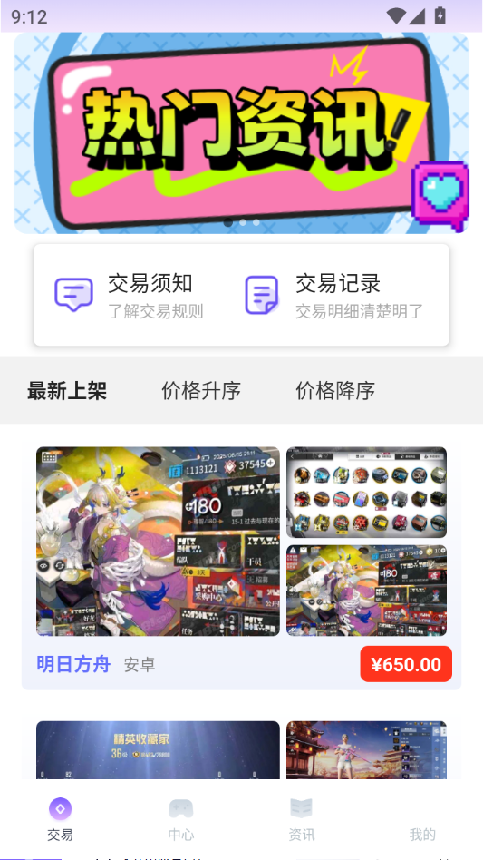 进入交易页面,这里提供了许多热门的账号资源。