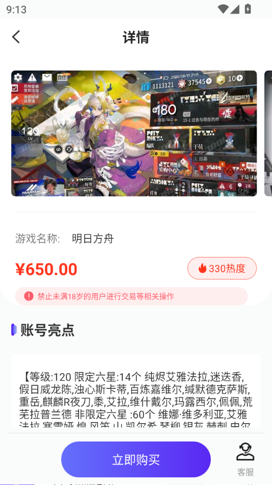 进入后选择游戏账号进入查看详情,感兴趣的话点击立即购买。