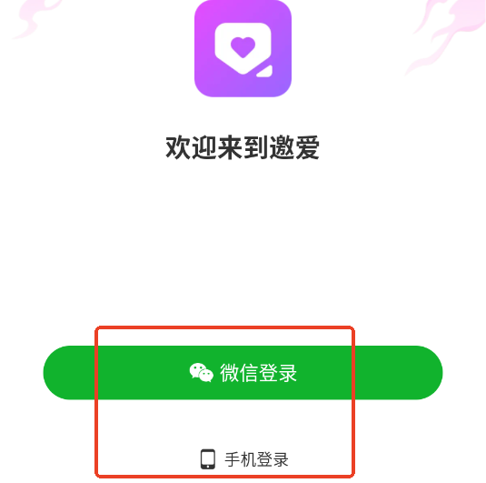 2、欢迎来到邀爱,这个时候你就能使用微信登录或者是手机登录。
