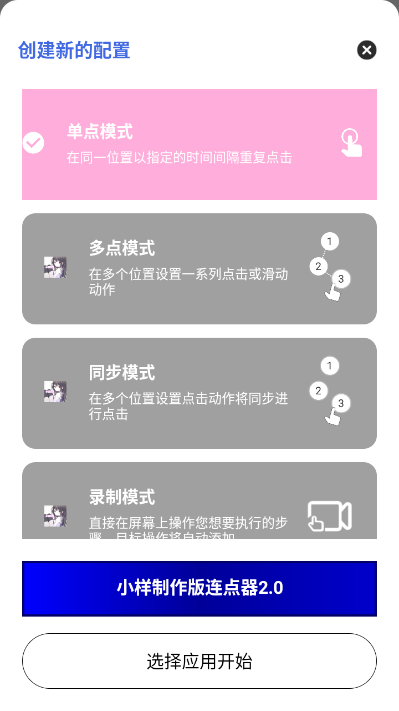小样制作版连点器app是款能够解放双手的连点器工具,它为用户提供了多种操作录制功能,能够满足游戏、工作、日常等不同场景下的使用需求,为用户节省大量时间,有需要的可以下载试试!