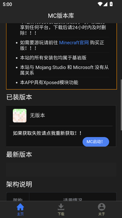 查看、下载、启动任意 Minecraft 版本;支持 Java 版与部分基岩版标识