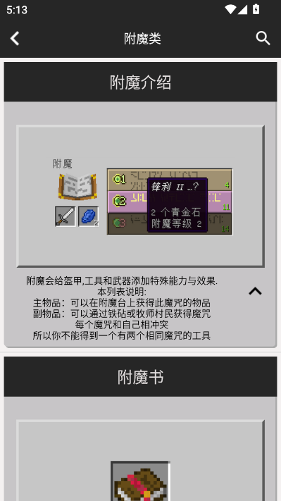 查看物品用途、获取方式、耐久度、附魔兼容性等详情
