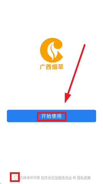 勾选已阅读并同意软件许可及服务协议和隐私政策,点击开始使用