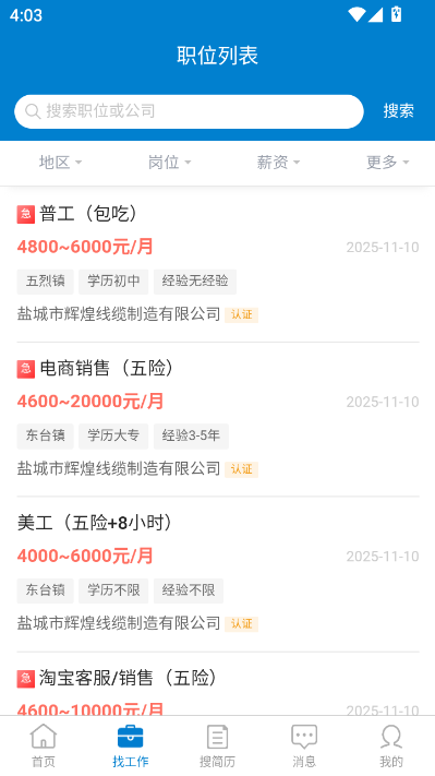 东台人才网app是款专注于江苏省东台市本地市民求职招聘的平台,汇聚了本地各行各业岗位招聘信息,为本地企业免费发布招聘信息,为求职者提供一个权威、时效的求职环境,支持和HR直接交流沟通,提高匹配率。