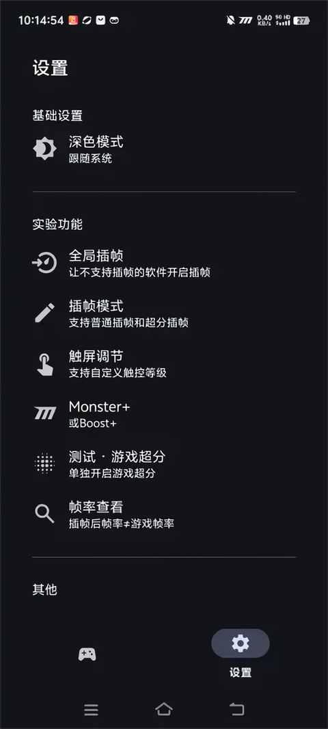 进入设置页面,这里提供了多种功能调节功能。