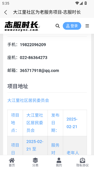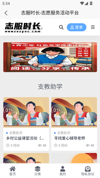 进入软件第一步先完成登录注册,然后返回首页可以看到这里提供了多种志愿活动。
