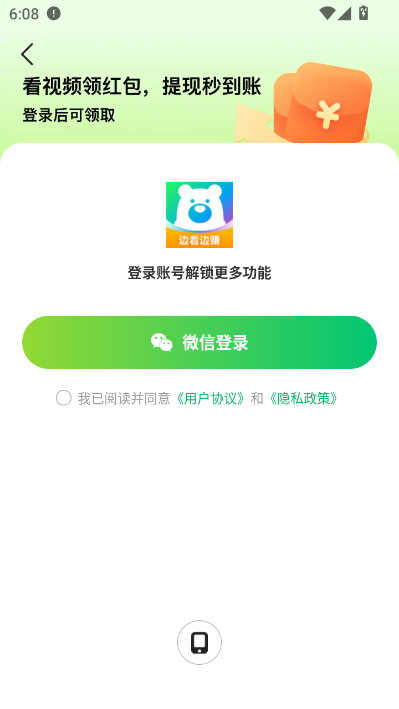 进入软件首要解决的是先登录注册,只有完成登录后才能领取红包奖励。