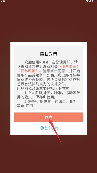 1、打开应用后仔细阅读用户协议和隐私政策,确认后点击同意按钮进入应用。