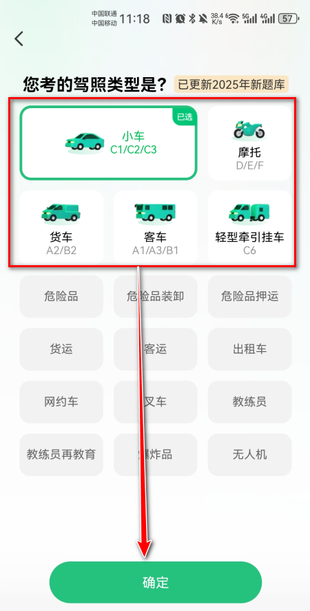 选择自己的驾照类型,点击确定即可。