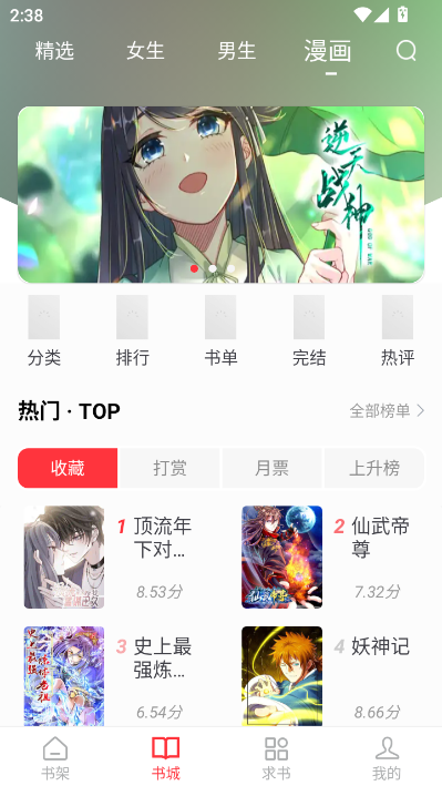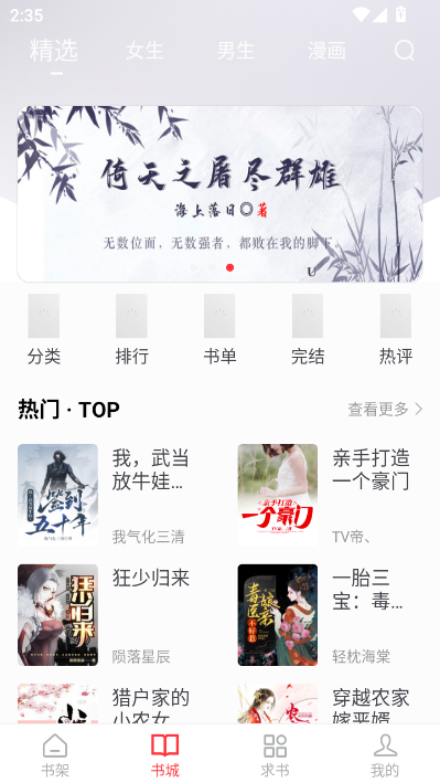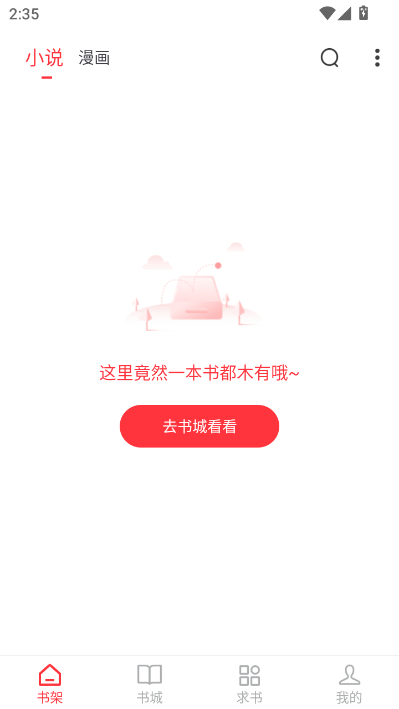 进入书架页面,这里刚开始没有书籍需要前往书城添加。