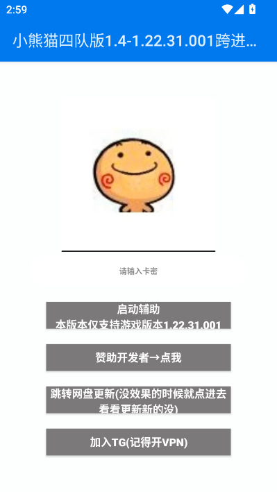 进入软件后,这里需要卡密登录,我们任意输入一串数字点击启动辅助即可。