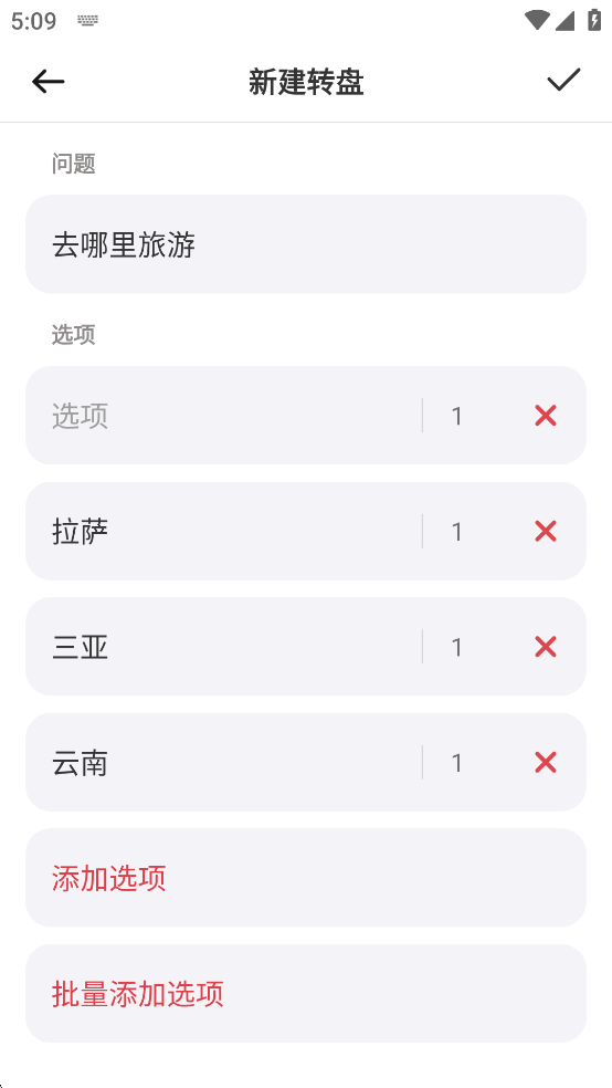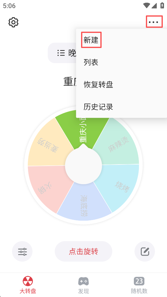 1、大转盘小决定App,点击右上角更多,然后点击新建