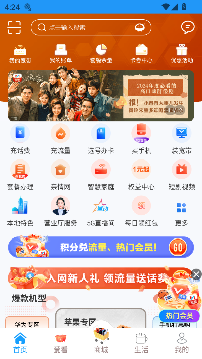 办理各类增值业务,如流量加油包、视频会员权益、家庭共享计划等。